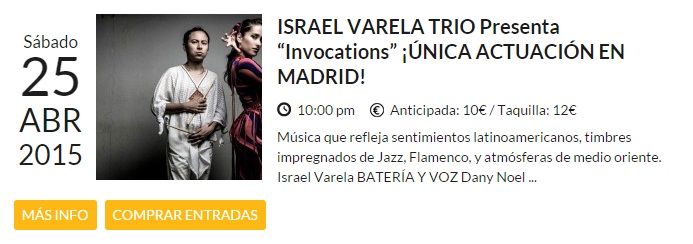 25 de abril – Israel Varela Trío en Bogui Jazz de Madrid 20 abril, 2015 • 693 × 244 • Agenda: semana del 21 al 27 de abril de 2015 Con Dany Noel (bajo y voz)