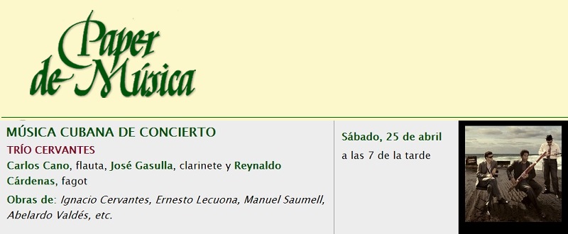 25 de abril – Trío Cervantes en Paper de Música de Capellades, Barcelona 21 abril, 2015 • 800 × 330 • Agenda: semana del 21 al 27 de abril de 2015