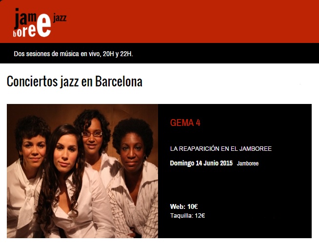 14 de junio – Gema 4 en Jamboree de Barcelona, Cataluña 8 junio, 2015 • 654 × 504 • Agenda: semana del 09 al 15 de junio de 2015